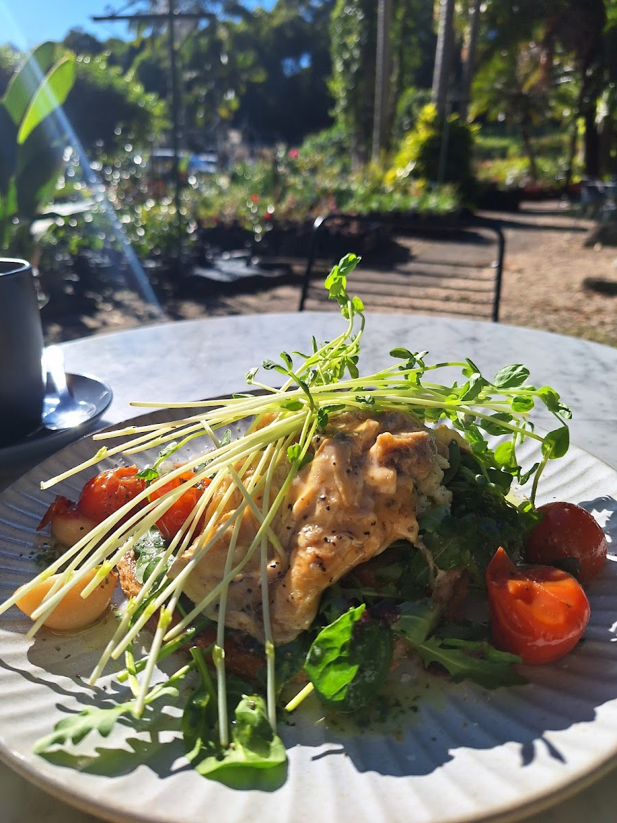 Tayzies is a café that feels firmly rooted in Mullumbimby’s lush, laid-back vibe. Tucked inside a flourishing nursery on Coolamon Scenic Drive, it blends natural greenery with a casual, garden-inspired setting where tables sit amid vibrant plants and dappled sunlight. This outdoor atmosphere offers a quiet, reflective spot to linger, especially on bright mornings or calm afternoons when the light weaves through leaves and creates a soft, calming ambiance.